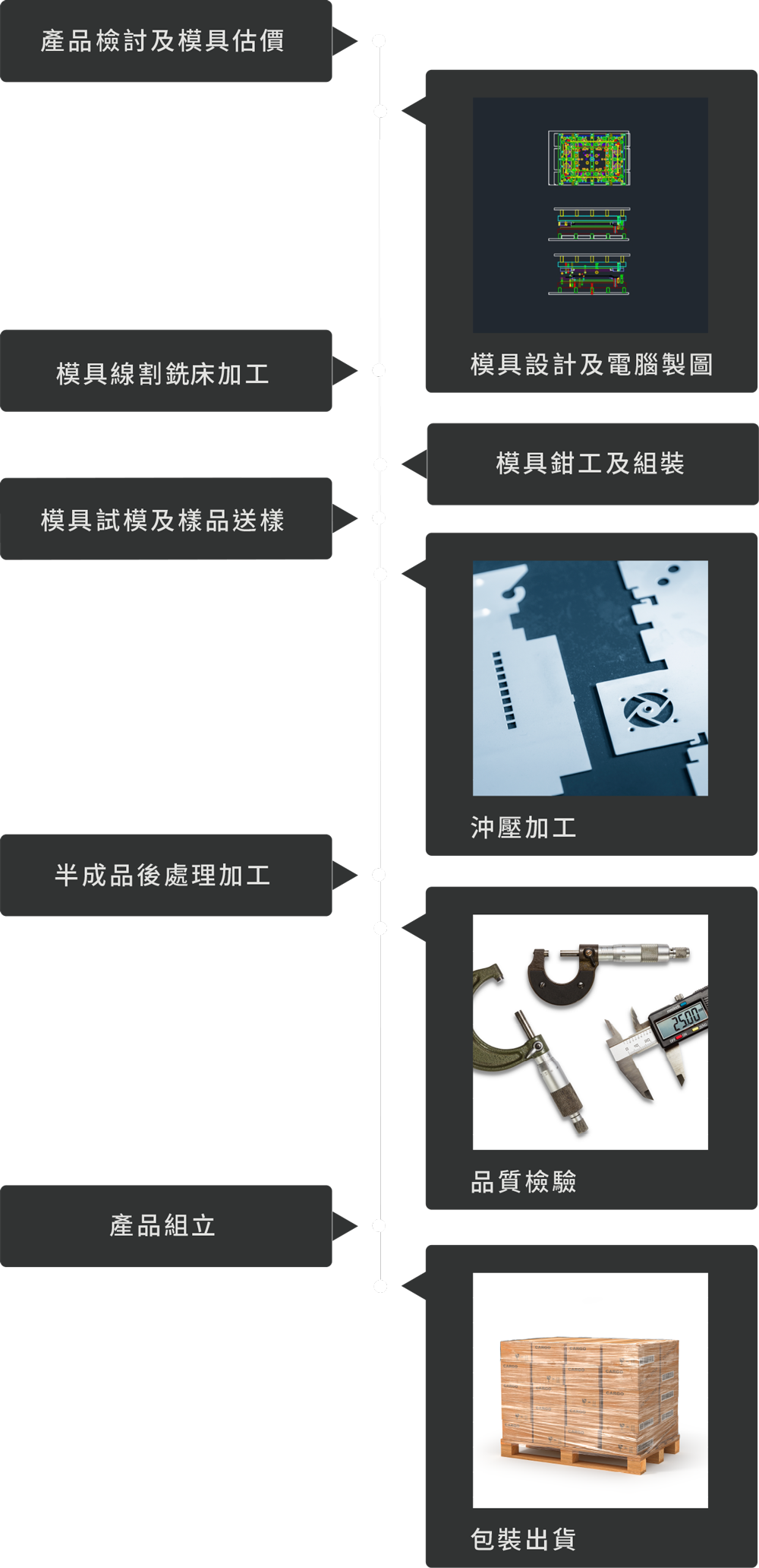 持續檢討與優化現有製程,從材料選擇、模具設計到系統性生產,每一環節均精益求精。